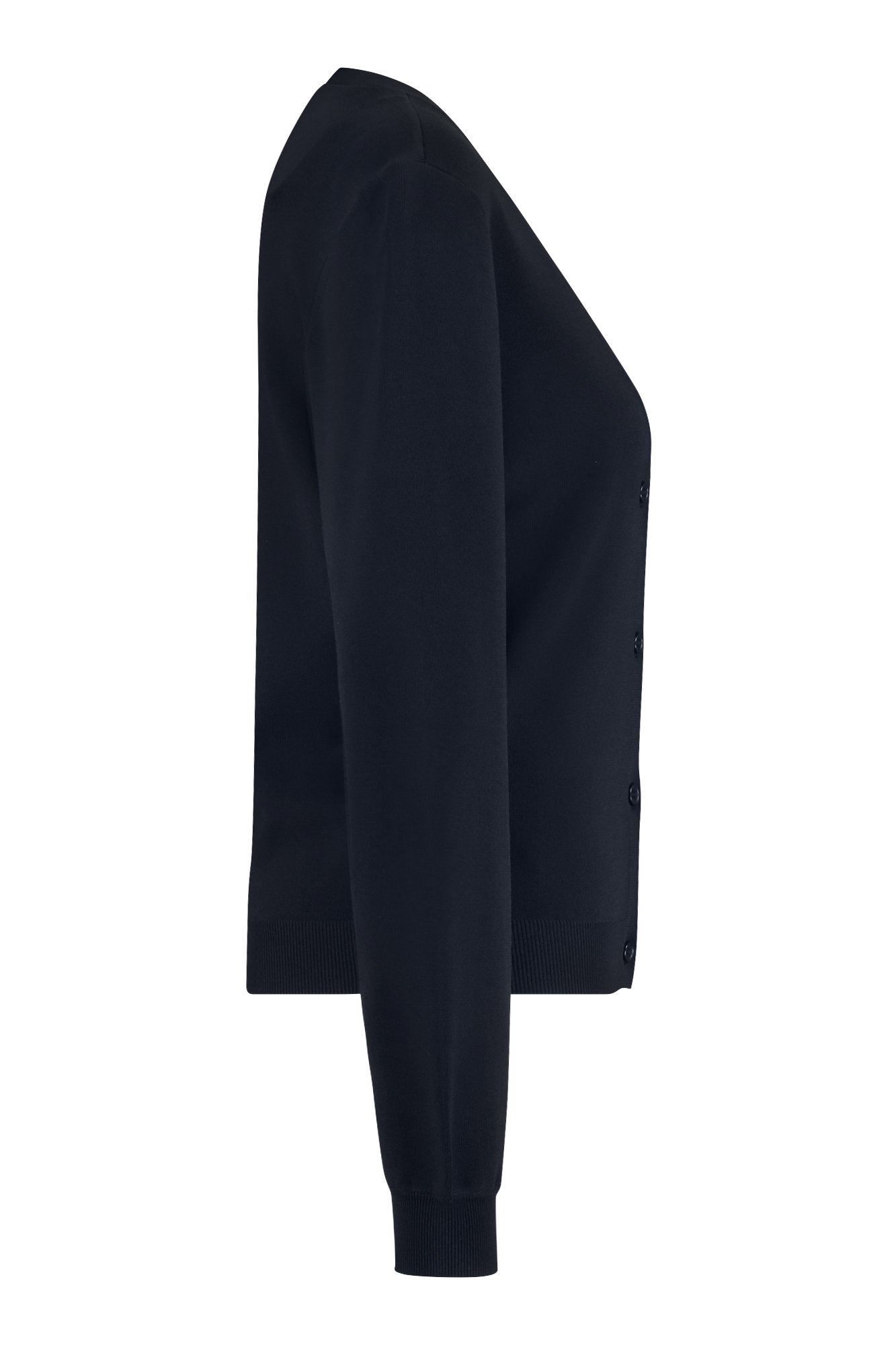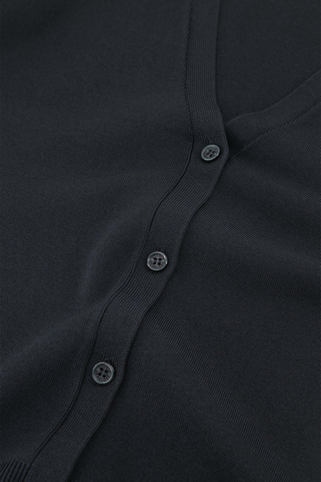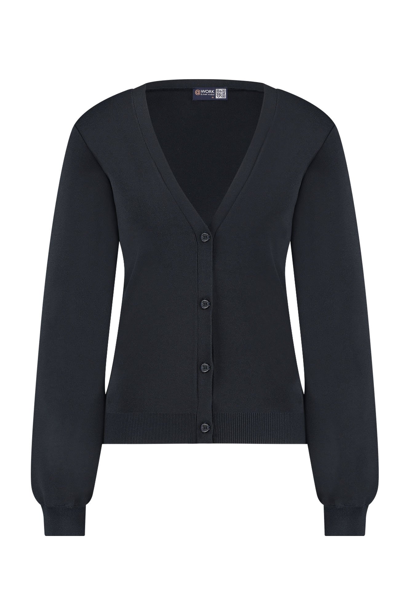 De Baarn cardigan, een heerlijk basis item. Altijd handig om dit vest bij je te hebben voor de frisse momenten op de dag. Het is een tijdloos maar stijlvol vest met knoopssluiting met vier knopen. Alle knopen kunnen open waardoor je het vest ook los kunt dragen. De hals loopt in een V. De onderkant van de mouwen hebben een elastische manchet. Verkrijgbaar in het blauw en zwart.