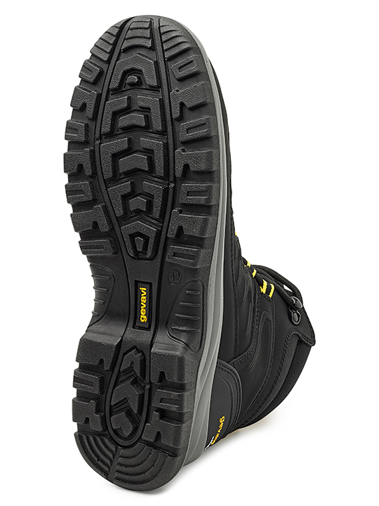 GS49 is een sportieve, hoge veiligheidsschoen met stalen neus en kevlar tussenzool. De enkelhoogte zorgt voor extra stevigheid tijdens het gebruik. De tweekleurige loopzool is samengesteld uit twee hardheden polyurethaan waardoor een optimum bereikt wordt tussen slijtvastheid/antislip enerzijds en loopcomfort/veerkracht anderzijds. Er is voorzien in een luxe, gel inlegzool welke verwisselbaar is. Hoofdmaterialen zijn crazy horse leder en Oxford nylon.