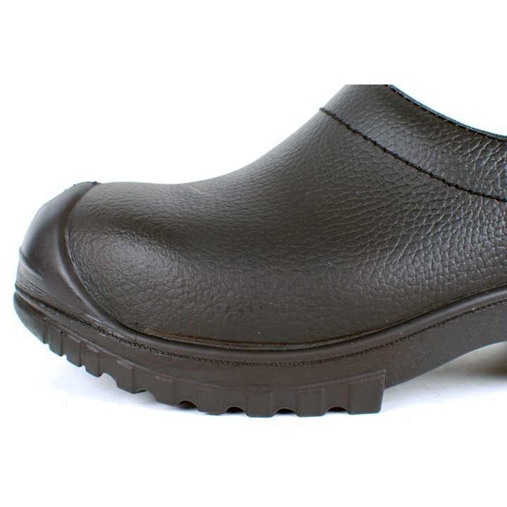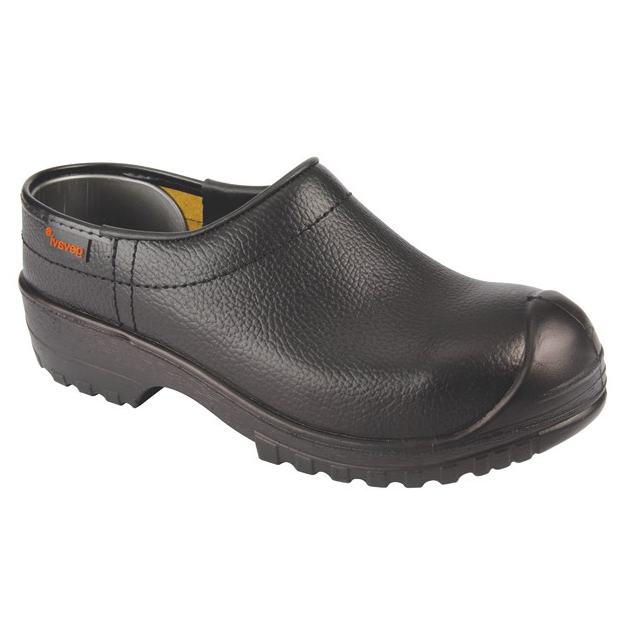 Unieke, lederen veiligheidsklomp. Met aangespoten PU-loopzool. Nietjes onzichtbaar en goede antislip. Voorzien van antizwik nokjes voor nog meer stabiliteit Vuillossend en 100% WATERDICHT. Stalen neus & buigzame zool. Categorie SB, EN 45,beveiligde schoenklomp.Dichte Hak.