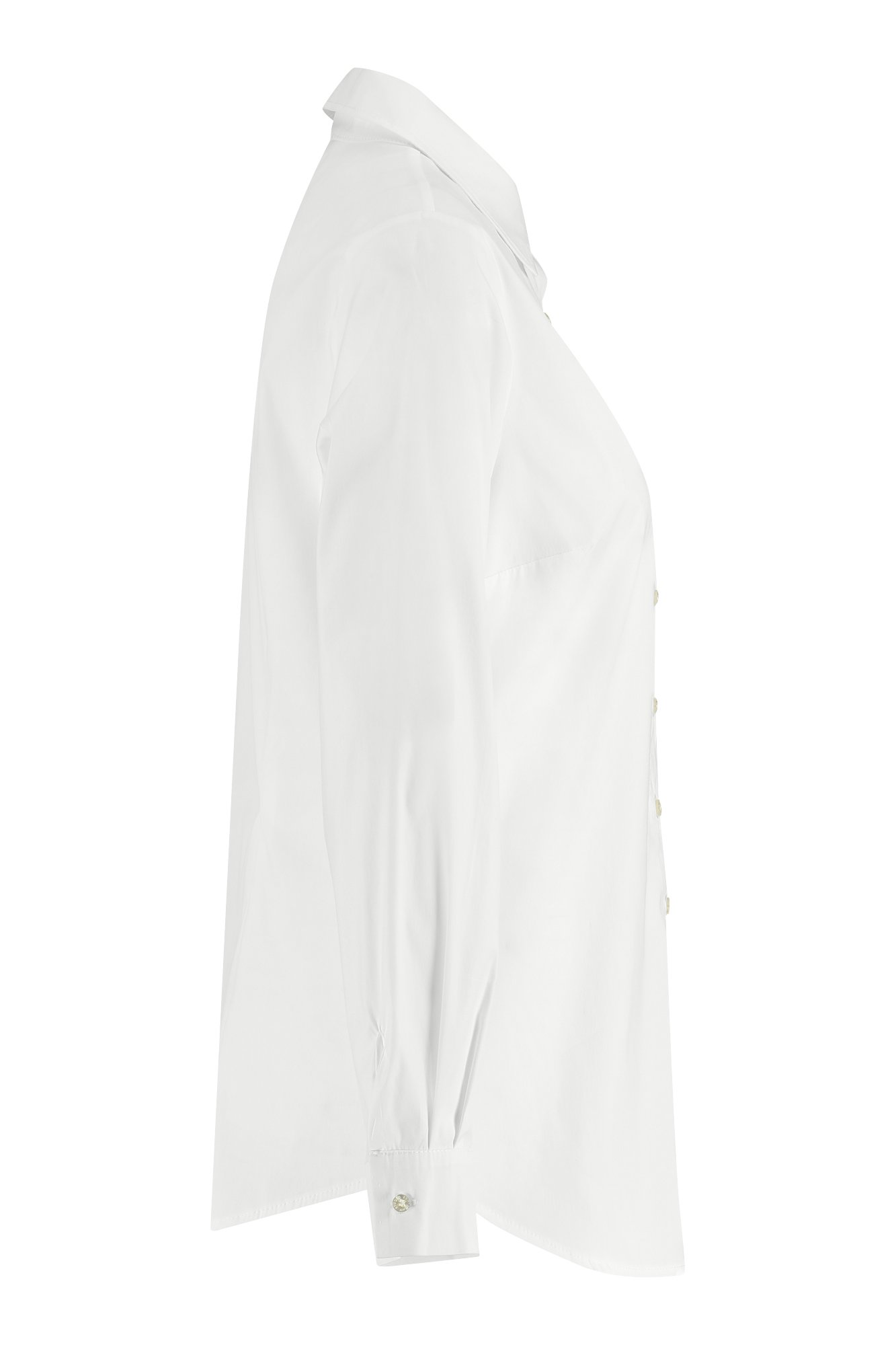 Wil je een echte business look creëren? De Groningen poplin blouse van @WORK by Studio Anneloes is een perfect item voor in de kast. De blouse is gemaakt van poplin elasthaan en is voorzien van een traditionele kraag, lange mouwen met cuffs en een ronde zoom. De onderkant van de blouse is rond gesneden. Pasvorm: getailleerde regular fit.