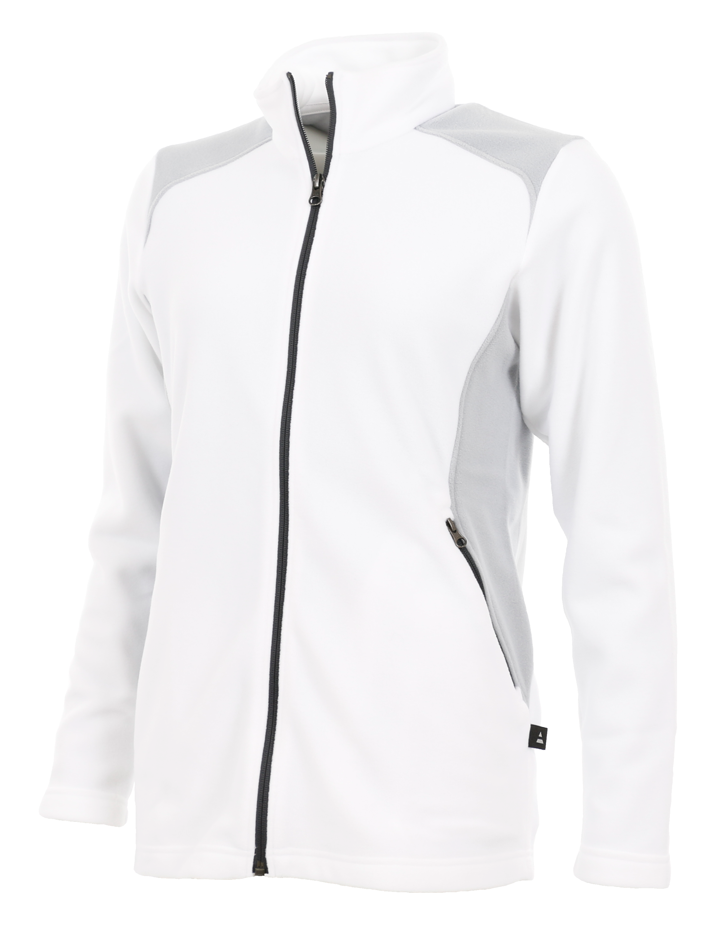 Damesfleece bicolor vest met lange mouwen en opstaande kraag. De sluiting is met rits. Het vest heeft 2 zijzakken afsluitbaar met rits. Industrieel wasbaar.