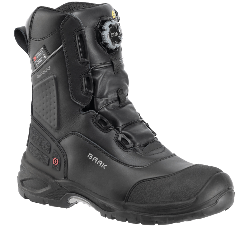 Robuste all season extra hoge veiligheidsschoen vervaardigd uit hoogwaardig volnerf leder; EN ISO 20345:2011 S3 SRC ESD WR CI; Schacht gevoerd met isolierende 3M Thinsulate® 200 materiaal met waterdicht en ademend BAAKdry®Membraam; Gesloten, gepolstert, met zacht rundsleder, voorzien van aantreklus; Boa® Fit System M4 voor het zware werk; Baak ESD Thermostep inlegzool vilt gecombineert met gepolstert schuim; PU/PU loopzool met Flexzone in zoolprofiel; PU tussenzool, genereert een dempende werking die gde gewrichten en de rug ontlast; PU loopzool; robust, antislip en geintregeert H-Koppelings Element, bevordert voetverantwoord afwikkelen; Speciale PU; koude bestendig tot -30°C; Brede composiet Flexneus; Maten 39-48; Wijdte 13