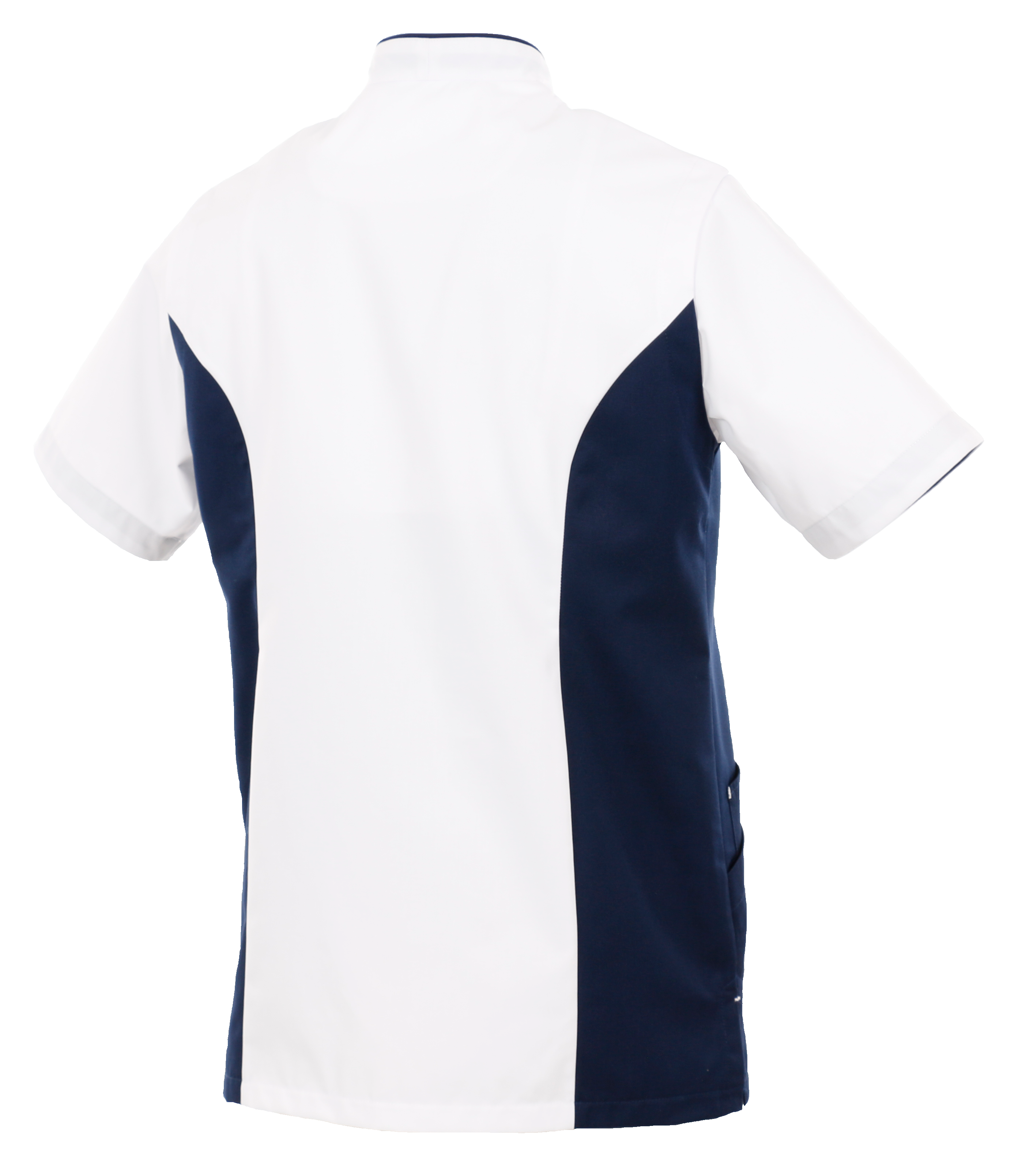 Unisex tuniek met korte mouwen en een aangesneden afgeronde kraag. De sluiting middenvoor heeft drukknopen. Voorzien van een borstzak en 2 zijzakken met telefoon- en biczak. A-move voor extra comfort.