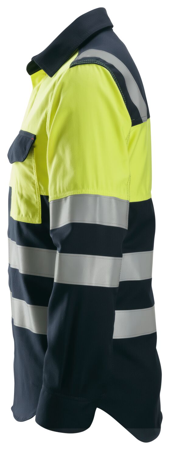 Goed zichtbaar T-shirt met lange mouw voor gecertificeerde bescherming tegen risico’s van hitte en vuur, elektrostatische ontlading, elektrische vlambogen, lassen en lichte chemische werkzaamheden. Het shirt heeft bovendien drukknopen voor snel en gemakkelijk uitkleden in geval van een ongeval. Leverbaar met langere doorlooptijd (niet op voorraad).