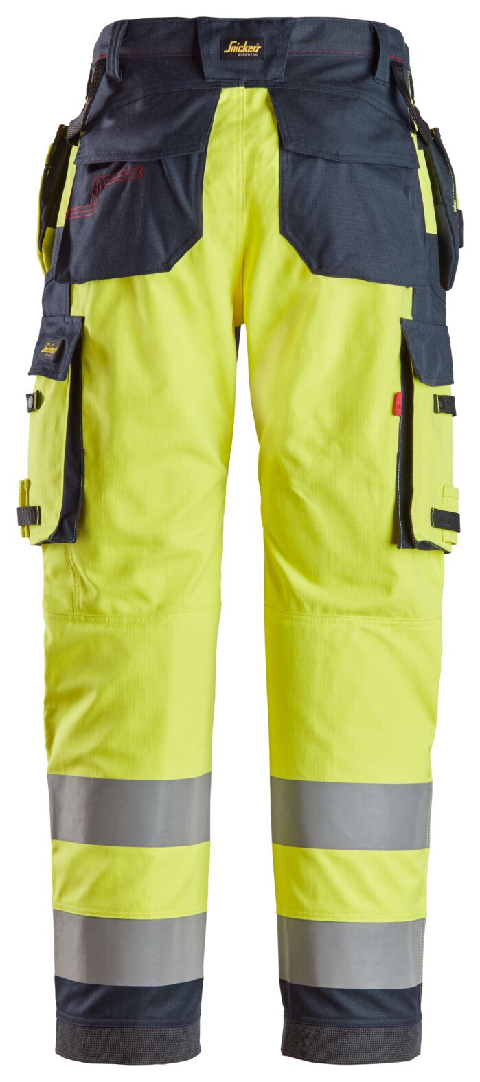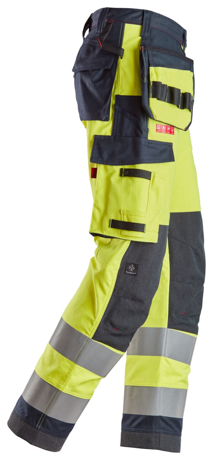 Persoonlijke beschermende werkbroek met holsterzakken en gelijke beenzakken. De broek biedt klasse 2 zichtbaarheid en bescherming tegen hitte en vlammen, antistatische en elektrische vlambogen voor veiligheid in risicovolle werkomgevingen en gevaarlijke omgevingen. De juiste maat bepalen? Kijk voor meer informatie onder Kennisbank > De juiste maat