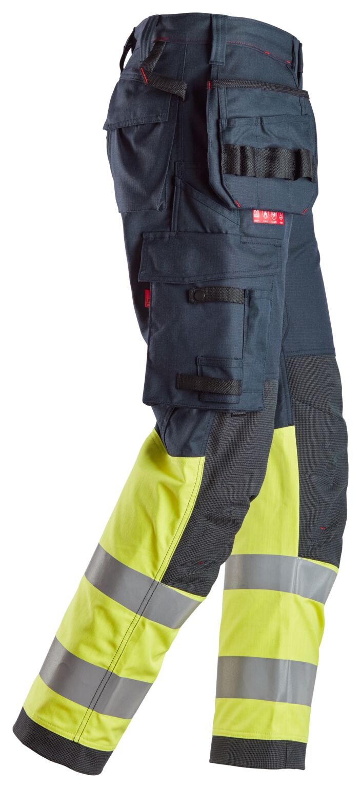 Beschermende werkbroeken die betrouwbare bescherming bieden in risicovolle werkomgevingen en gevaarlijke omgevingen. De broek biedt gecertificeerde bescherming en beschikt over antistatische eigenschappen, inherente hitte- en vlambescherming en bescherming tegen elektrische vlambogen. Een reflecterende heatseal in combinatie met fluorescerend materiaal zorgt voor zichtbaarheid van klasse 1, terwijl voorgebogen pijpen zorgen voor comfort en bewegingsvrijheid.