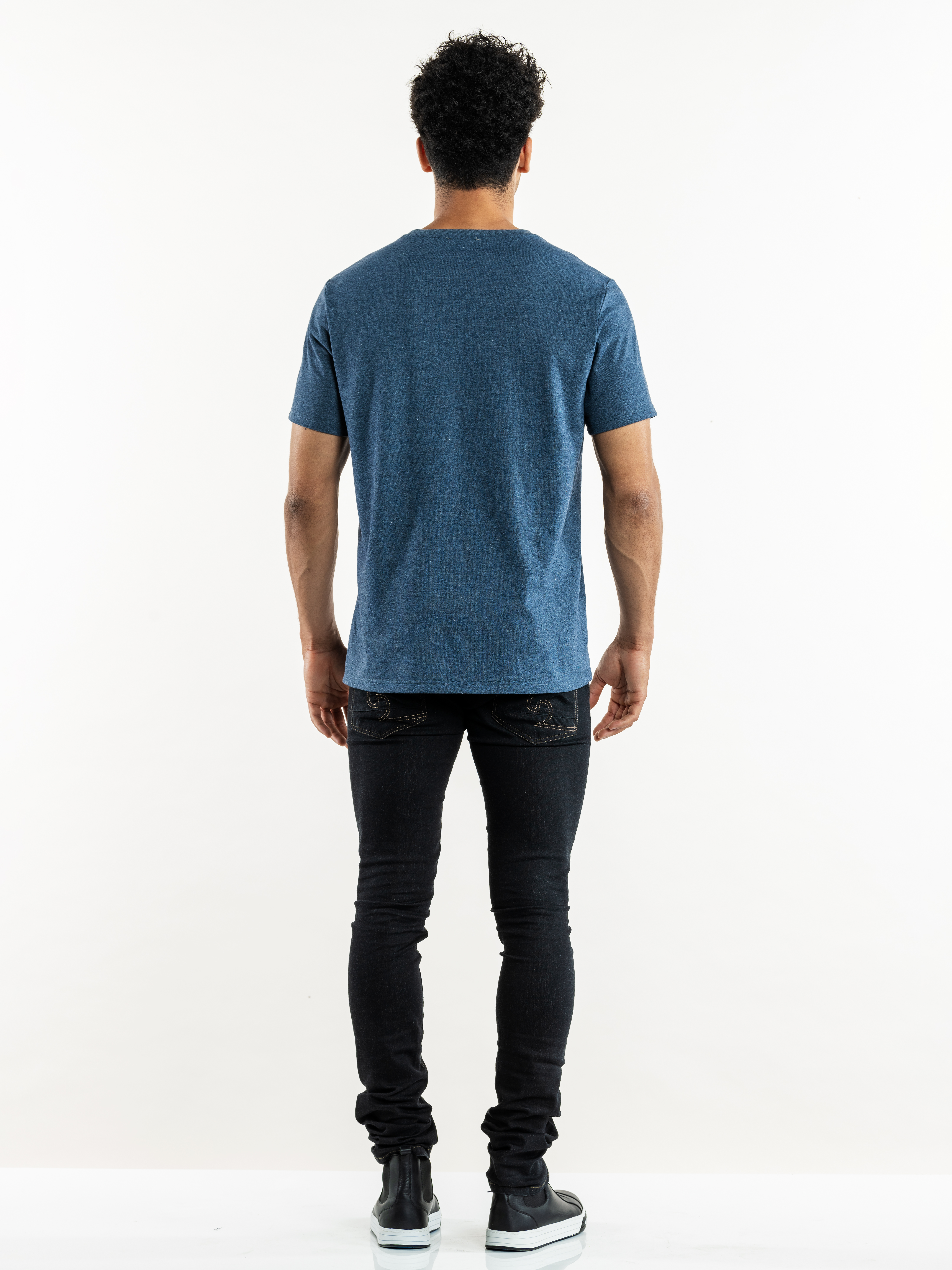 Dit mooie basis T-shirt is uit de Recycled Chefwear collectie van Chaud Devant. Een mooi T-shirt met een V-hals en een getaillieerde pasvorm voor bijvoorbeeld in de bediening. Het shirt is blauw/grijs gemêleerd wat een stoere uitstraling geeft. Ook verkrijgbaar in een damesmodel.