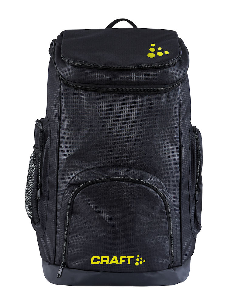 Een rugzak van 65 liter gemaakt van duurzaam polyester aan de buitenkant en verstevigd PU-coat en een waterdichte binnenvak. Twee zakken aan de buitenkant, ritssluitingen en ergonomische schouderbanden.