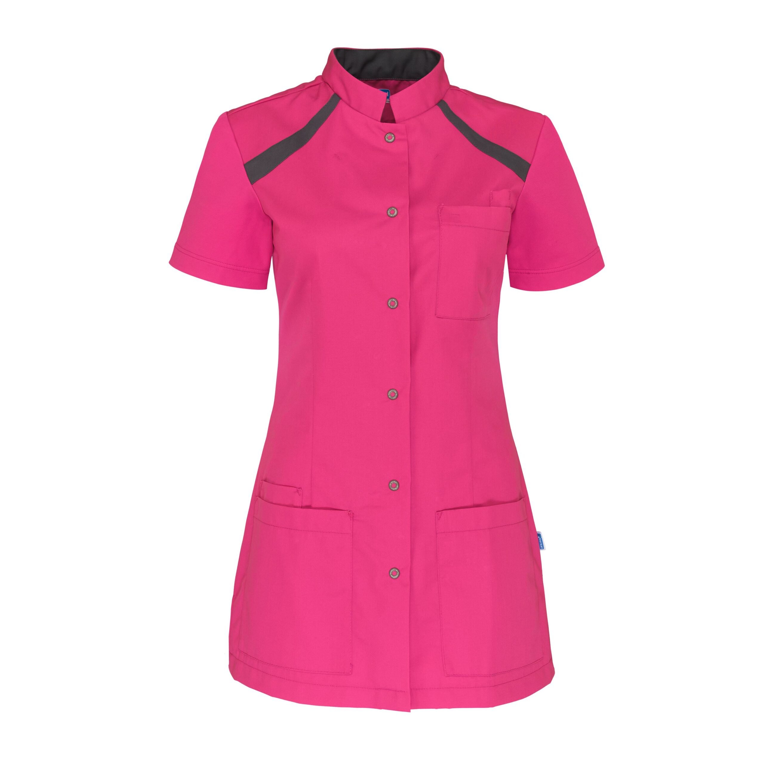 De Tula is een zorgjasje met opstaande boord en een drukknoopsluiting. De mouwen en inzetstuk op de rug zijn gemaakt van stretchstof (piqué). Op de linkerborst zit een borstzak met pennenzak. De zorgjas heeft twee zijzakken met aan de rechterkant een telefoonzak. Voor bewegingsvrijheid heeft het jasje zijsplitten. Samenstelling: 65% polyester / 35% katoen. Beleg: 55% katoen / 45% polyester, piqué.